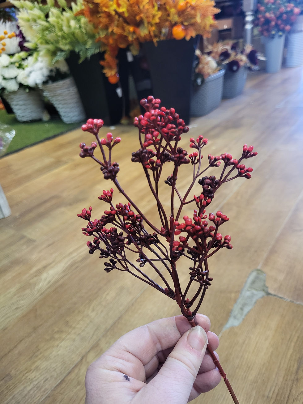 Long stem frosted eucalyptus and red berries spray