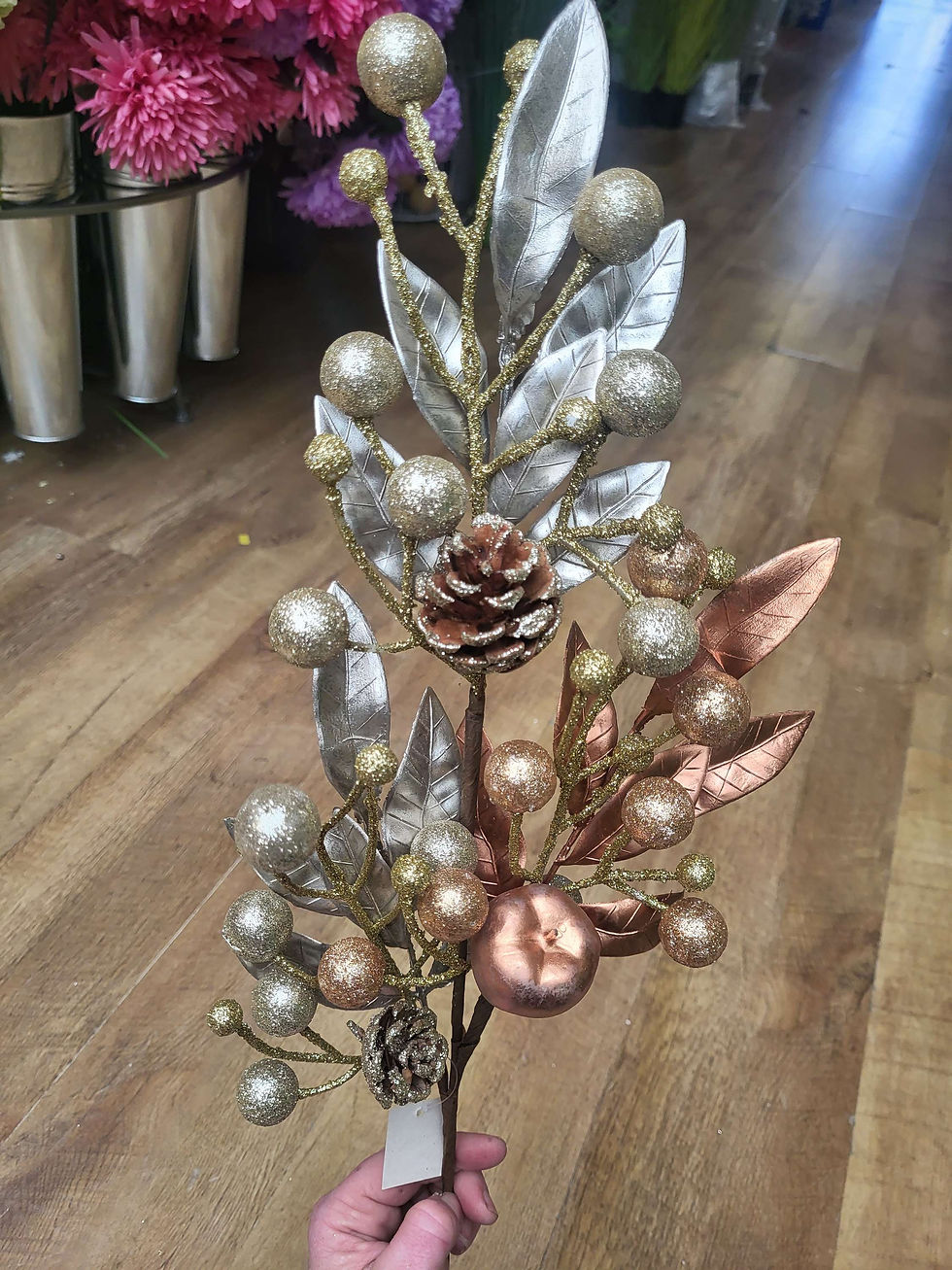 75cm long stem champagne/copper apple and pinecone stem