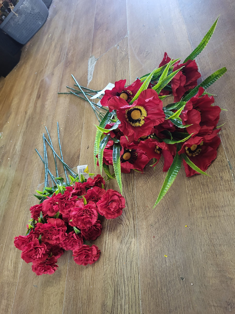 Bundle of 10 Long stem red flowers - 5 poppy/5 carnation